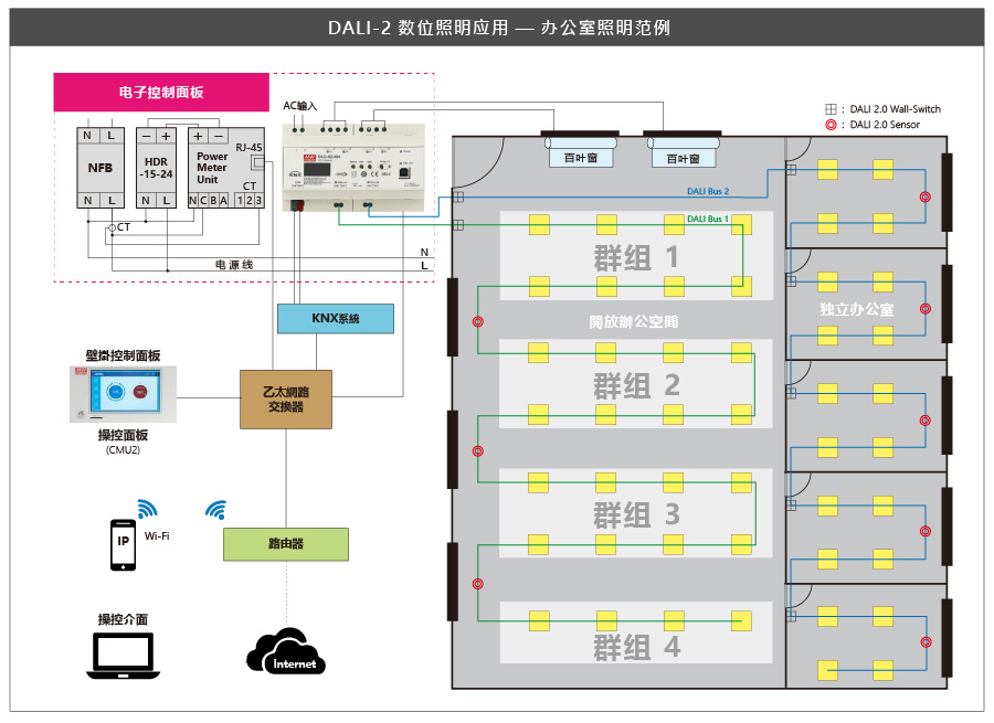 隨著5G及智能居家產品的發展趨勢,數字照明系統及樓宇自動化的應用,越來越受到關注。如何有效整合大樓或智能居家所有的照明系統,同時結合樓宇自動化的控制,將是未來發展的趨勢。跨入(B.A)樓宇自動化系統,明緯除了提供KNX樓宇自動化系統相關產品之外,我們正式推出符合DALI-2規范,數字控制的照明系統DLC-02控制器;以及可有效整合進KNX樓宇自動化系統(KNX轉DALI Gateway)的產品— DLC-02-KN,用戶可依場域規模,選擇合適的產品做搭配。