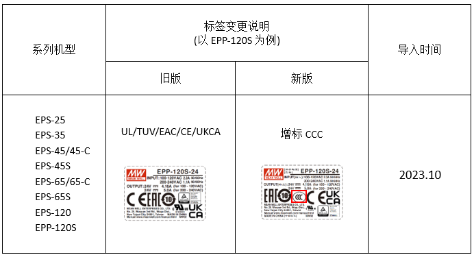 產品升級通知:EPS-25~120 & EPP-120S 新增 CCC 安規認證