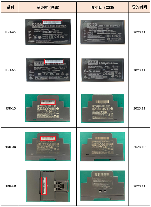 產品變更通知:LDH-45/65 系列 & HDR-15/30/60系列卷標變更