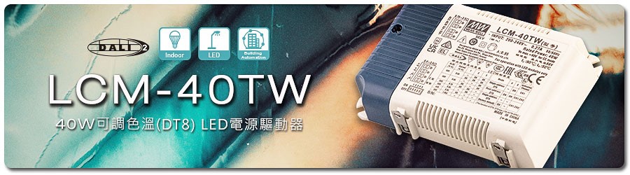 LCM-40TW符合DALI協會IEC 62386-209(DT8)標準的照明系統,可通過DALI數字控制自動調整色溫,提升使用者的身心舒適程度與工作效率。LCM-40TW提供兩路輸出給兩組不同色溫的LED使用,電流可調控范圍為500~1050mA,適用于不同LED模塊。即使未搭配DALI總線,也可通過按壓開關實現色溫調整功能。
