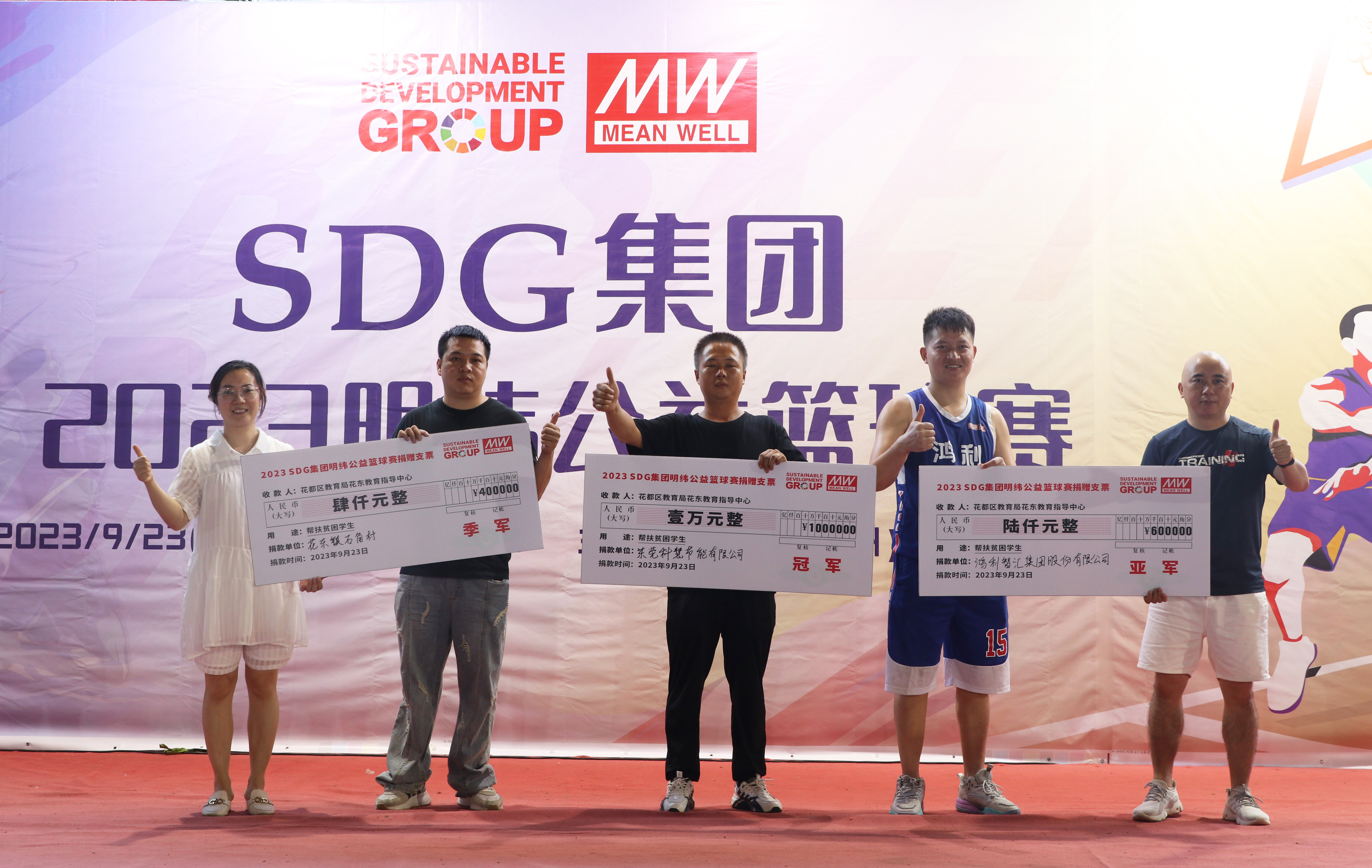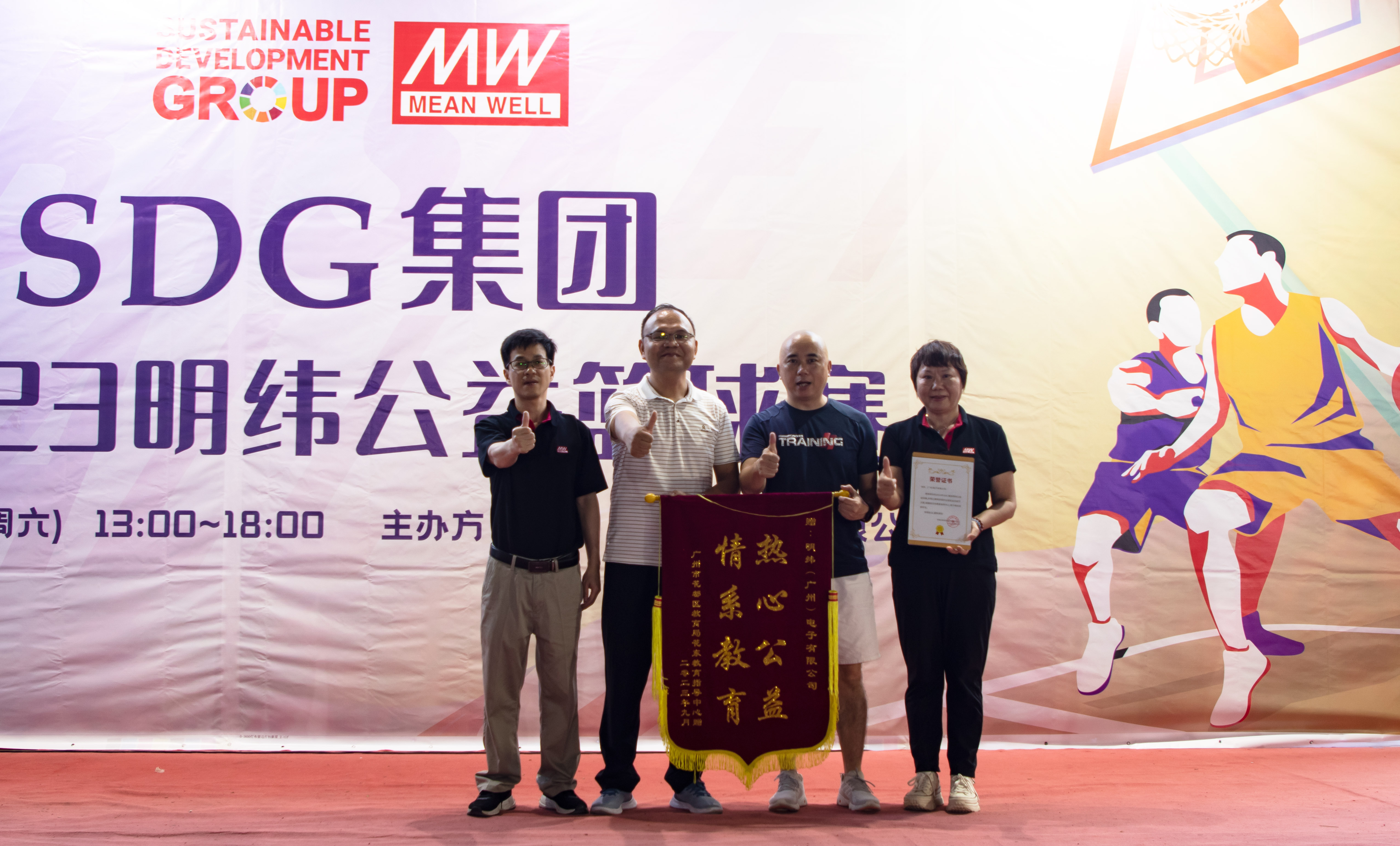 在SDG集團旗下明緯(廣州)電子有限公司的精心組織下,一場公益籃球賽于2023年9月23日在廣州花都陶源農場拉開序幕。此次活動邀約了當地政府機關、教育、明緯協力廠、供應商、企業伙伴等8支籃球代表隊參與,并取得了圓滿落幕。