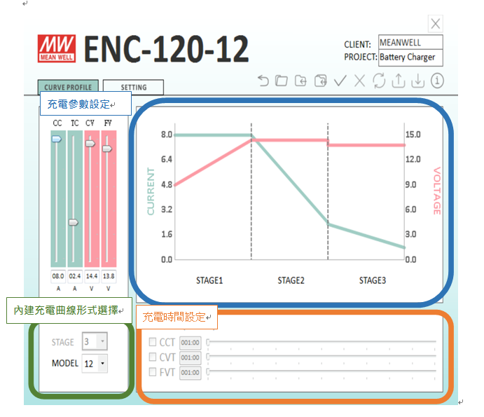 有鑒于此,明緯新一代的充電產品ENC系列,設計時即考慮用戶或系統業者于建置充電設備時,所需求并著重的幾項主要功能特別納入設計規劃,故在產品開發時,即要求針對產品的散熱方式、可程序化應用與節能減耗等項目進行技術上的提升與突破,以期達到滿足使用者最大需求的高附加價值。其中,可程序化控制輸出電壓與輸出電流,可自行對各類電池的充電曲線進行設定與調整,大大的滿足使用者需求(需搭配SBP-001與軟件),可彈性設定電流充電,除此之外,尚有電池OVP保護、UVP保護、短路保護、過溫度保護,將功能集合于一身,提供客戶最佳的充電解決方案。搭配鋰鐵電池的充電效能,更可完全符合并通過美國能源部(DOE) 對電池充電器BCS(battery charger system) 能耗標準(UEC)的要求。