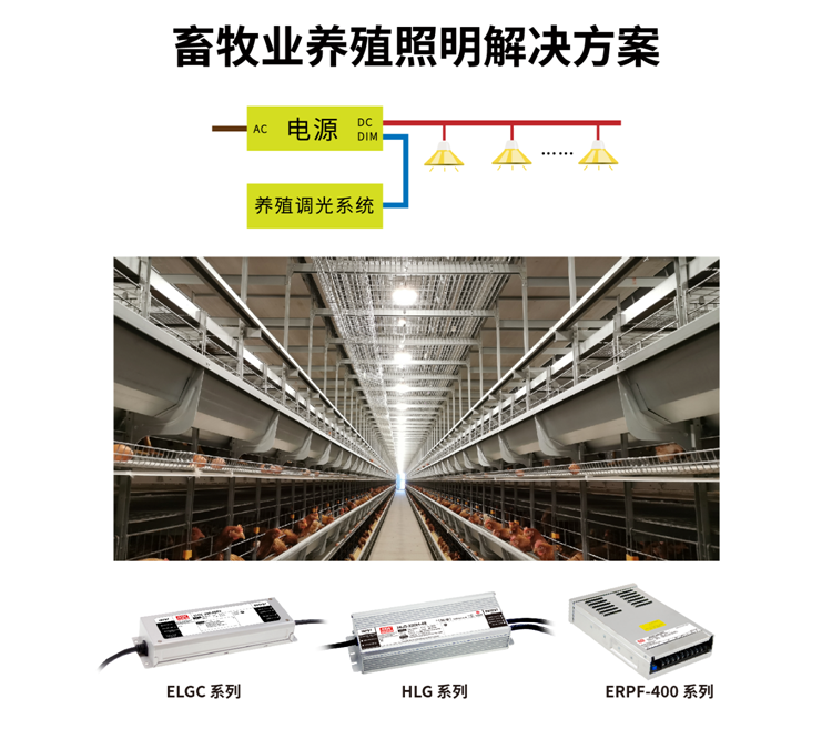 因應養殖照明市場應用需求,MEAN WELL新推出的NPF-200/HLG/ELG/ERP系列恒壓調光產品,此系列產品采定電壓低紋波設計,搭配定電壓或燈帶燈具,可實現調光無頻閃需求,可適合各種養殖場合燈具擴展需求。目前已有150W/200W/320W/400W產品可供客戶彈性選擇。