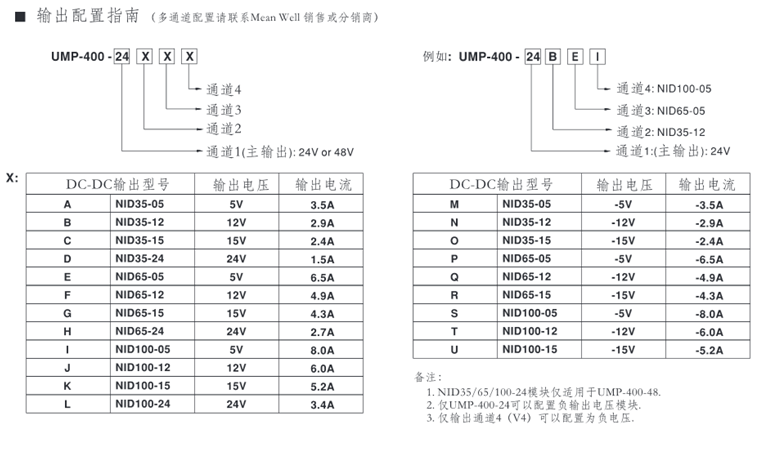 1. NID系列采用輸入與輸出非隔離降壓線路設計,輸入電壓需大于輸出電壓,故NID35/65/100-24必須選擇UMP-400-48當作前級。