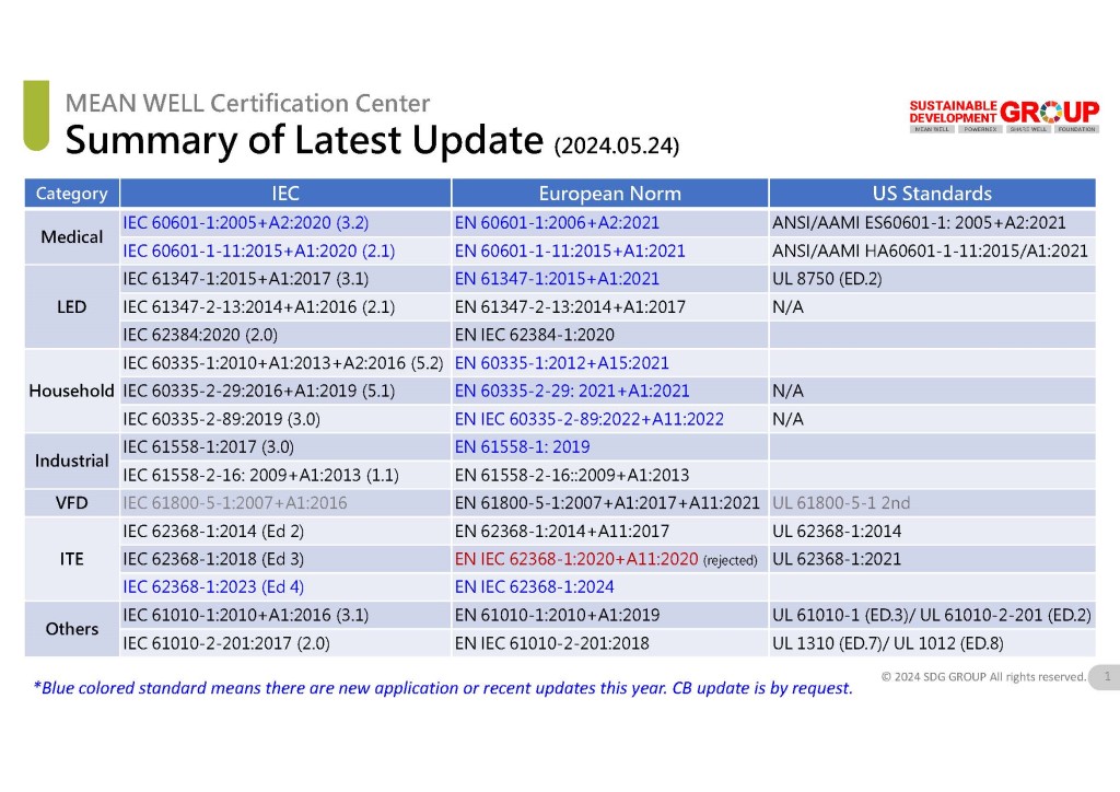 2024明緯安規(guī)標(biāo)準(zhǔn)更新動(dòng)態(tài)